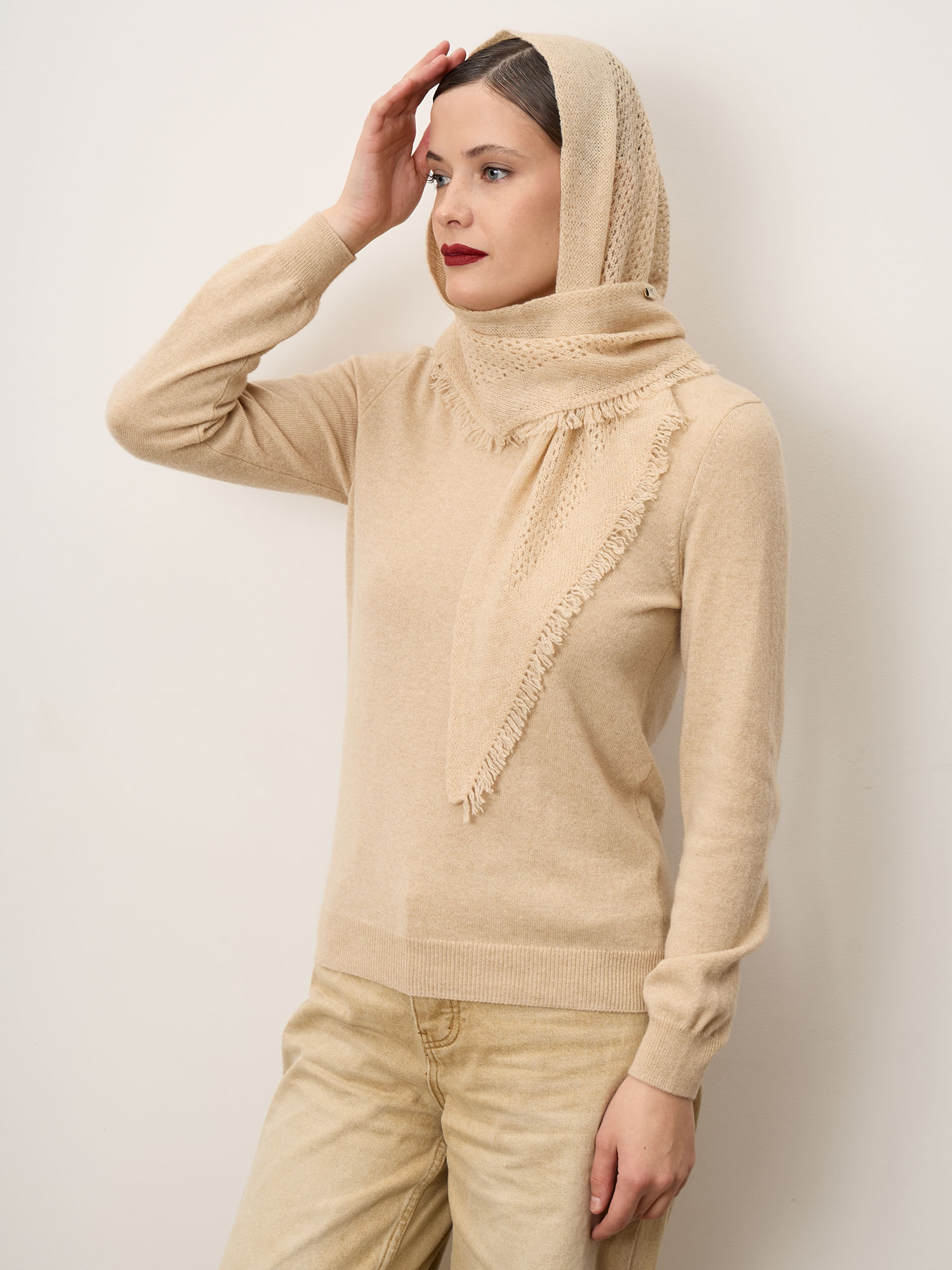 Натуральный кашемир премиального качества — лёгкий, мягкий и тёплый. Волокно отличается высокой теплоизоляцией и воздухопроницаемостью, приятно к коже и обеспечивает комфорт даже при длительном ношении.