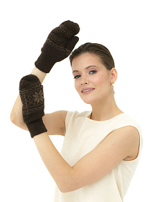 Варежки из пуха яка с рисунком UL темно-коричневые