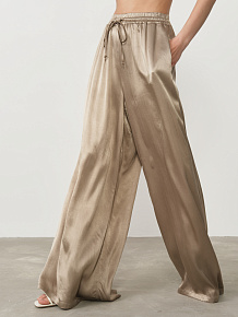 Свободный прямой крой с акцентом на лёгкость и плавность линий. Брюки визуально вытягивают силуэт и создают ощущение невесомости.