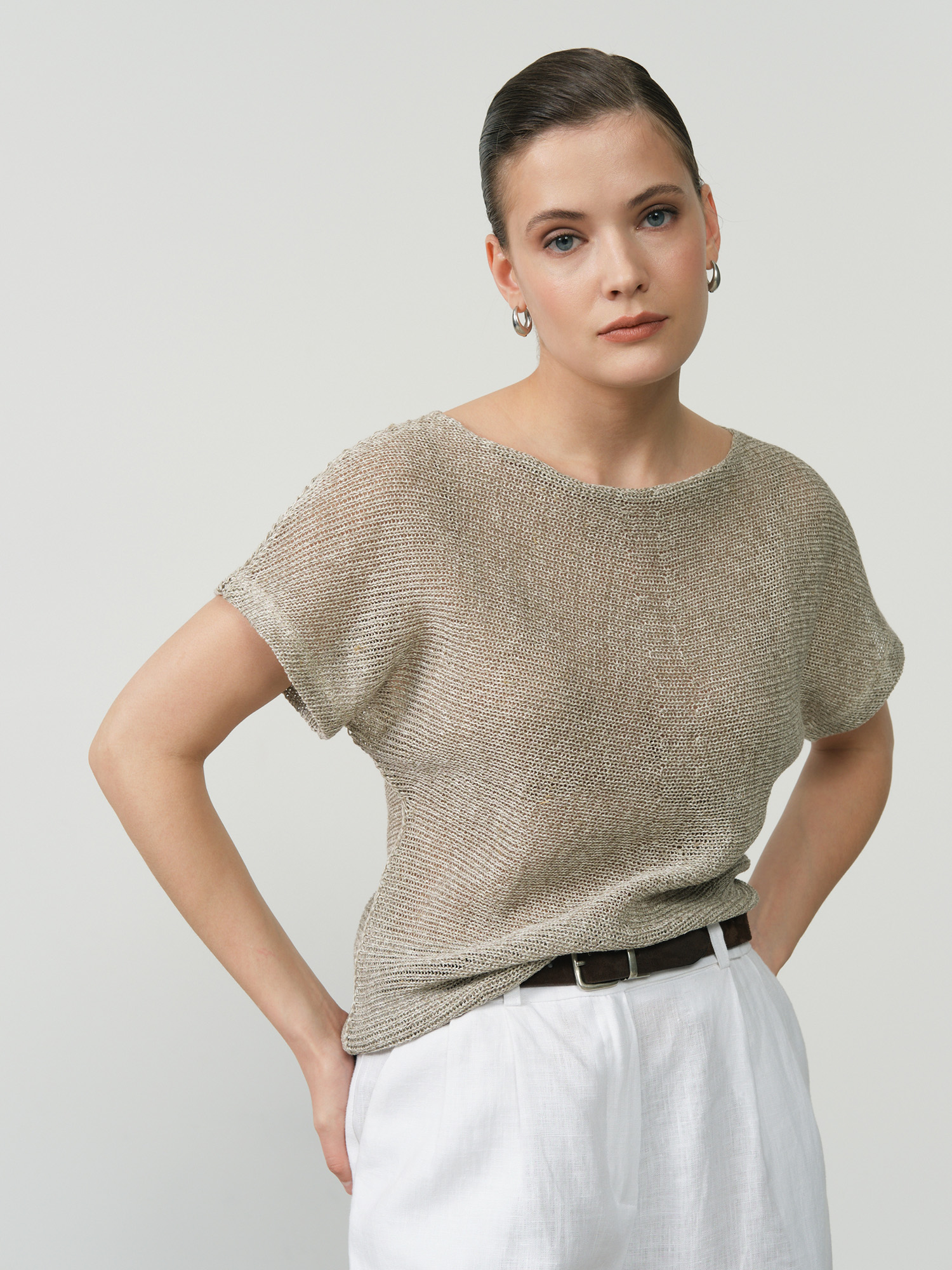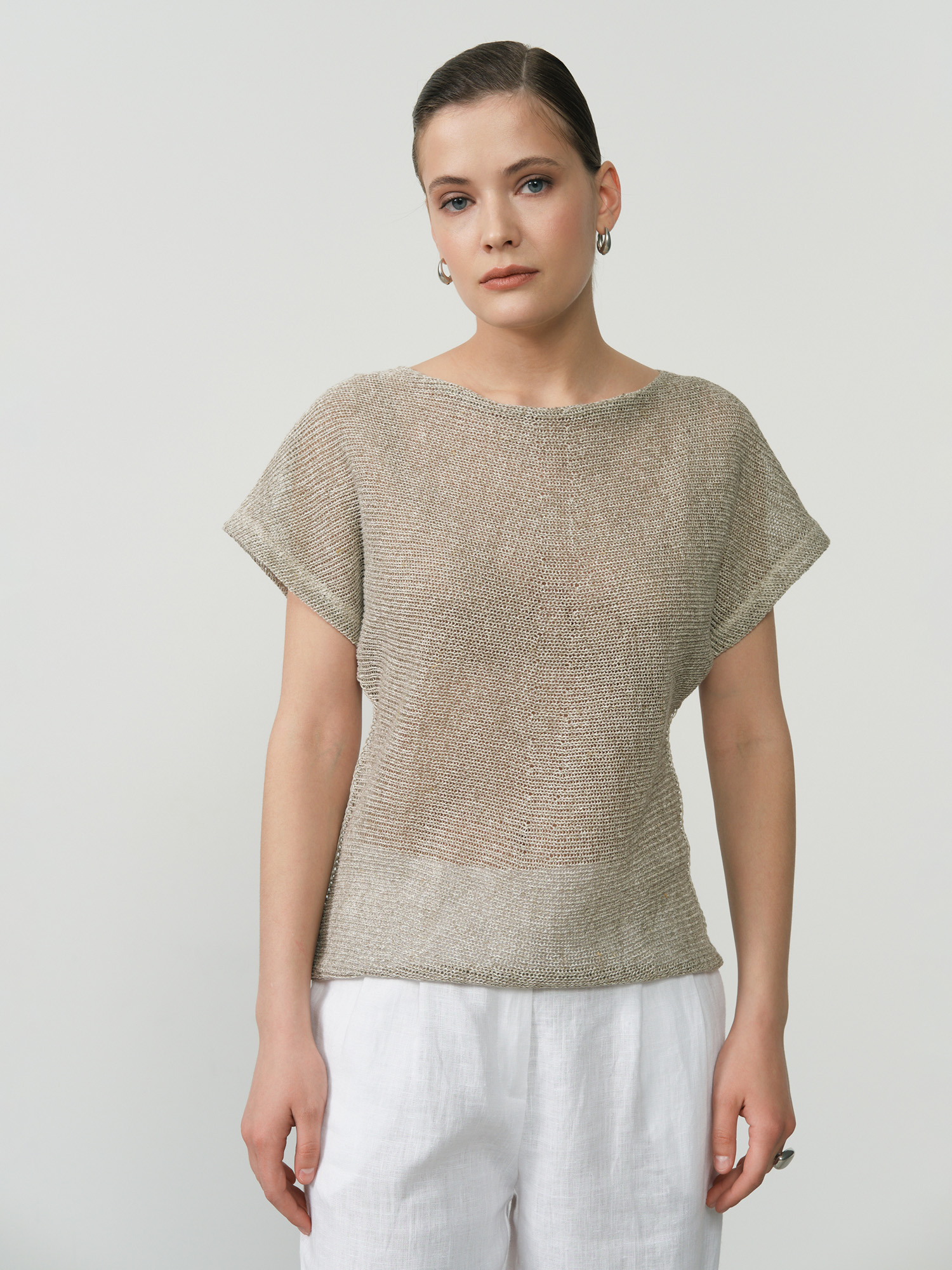 Женский льняной джемпер — идеальный выбор для теплого сезона. Этот джемпер, выполненный из 100% натурального льна, обладает превосходными дышащими свойствами, обеспечивая вам комфорт даже в жаркие дни. Мягкий серый оттенок придает изделию свежесть и легкость, прекрасно сочетается с различными элементами гардероба. Джемпер оснащен короткими рукавами и имеет свободный силуэт, что делает его удобным для повседневной носки. Идеально подходит для прогулок, работы и отдыха на природе. Добавьте этот джемпер в свой гардероб, чтобы создать стильные и комфортные образы на каждый день