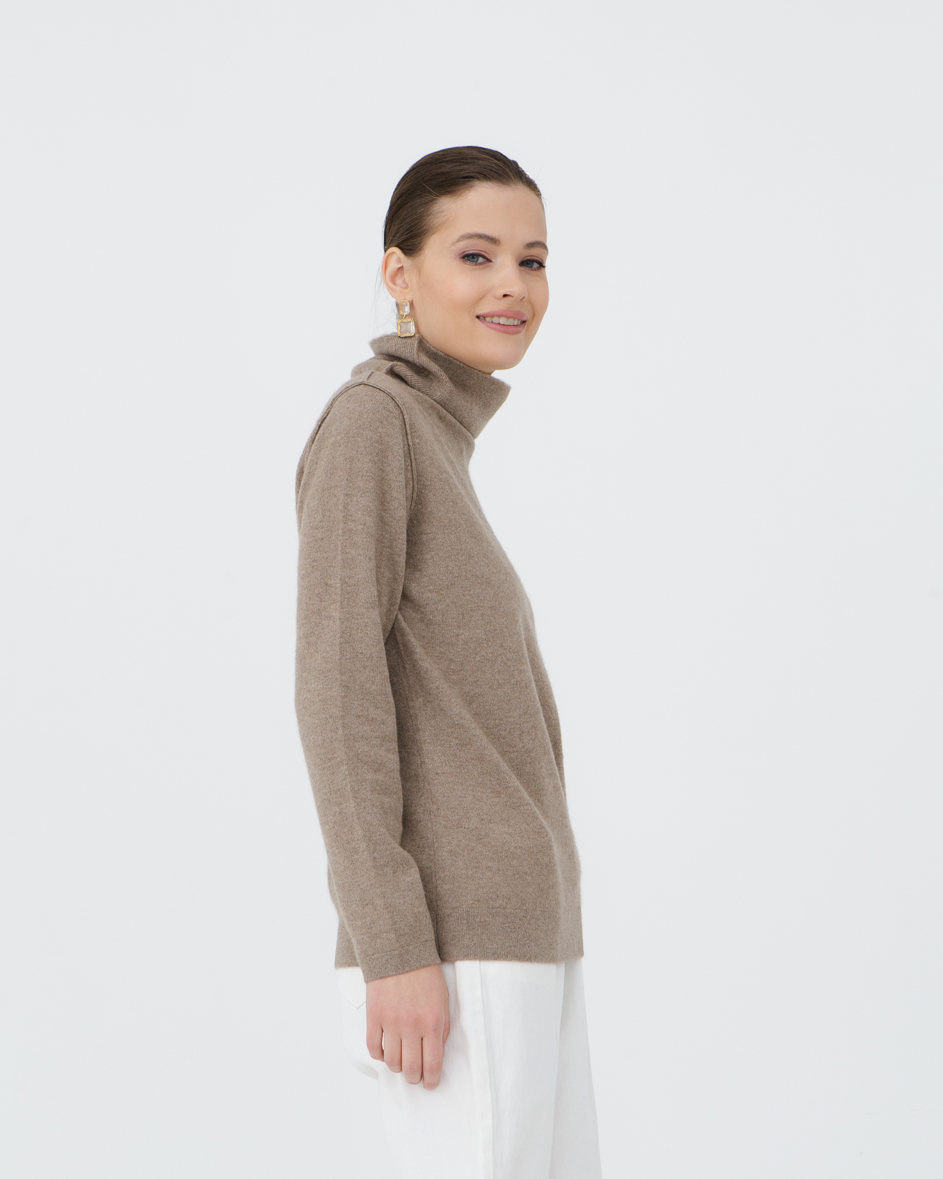 Капучино — тёплый и благородный оттенок, который подчёркивает естественную фактуру кашемира и гармонично сочетается с базовыми цветами одежды.